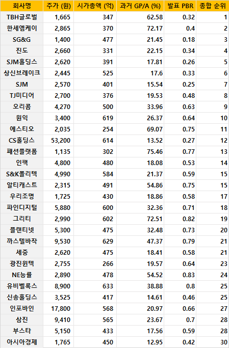 신마법공식 2.0(저PBR + 고GP/A + 소형주)